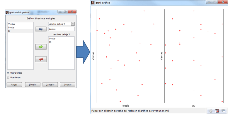 Gráfico de dispersión (múltiple): Ver -> Gráficos múltiples -> Gráficos X-Y (Scatter)